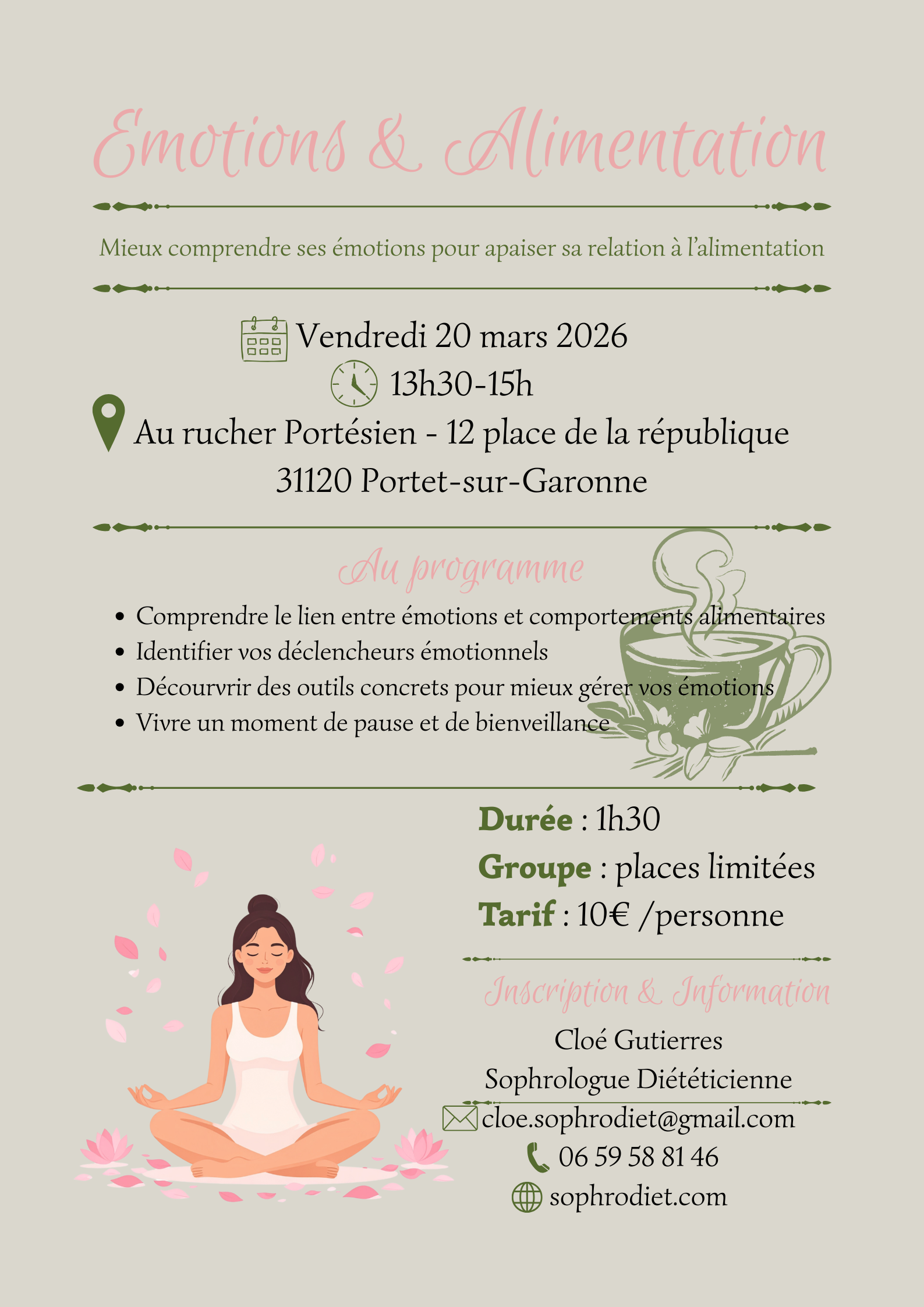 Diplômée en sophrologie et en diététique, j’accompagne les personnes en quête d’équilibre corps - esprit et les femmes à mieux vivre la période de la (pré) ménopause avec une vision complète du bien-être.